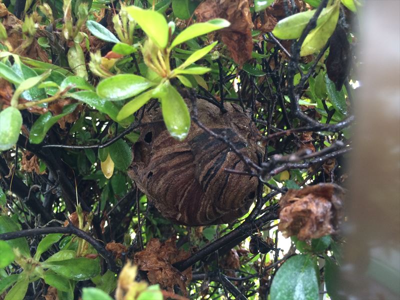 まだ、小さい巣でしたが、刺されると命に係わるスズメバチです。