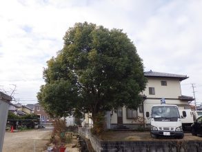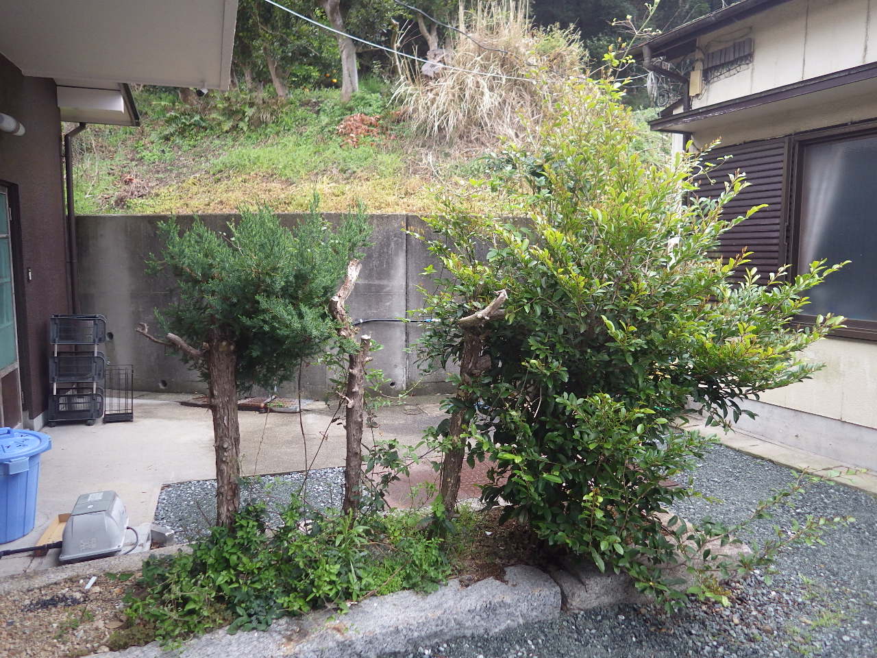 出来立ての駐車場のおくにある樹木を伐採、伐根しました。
