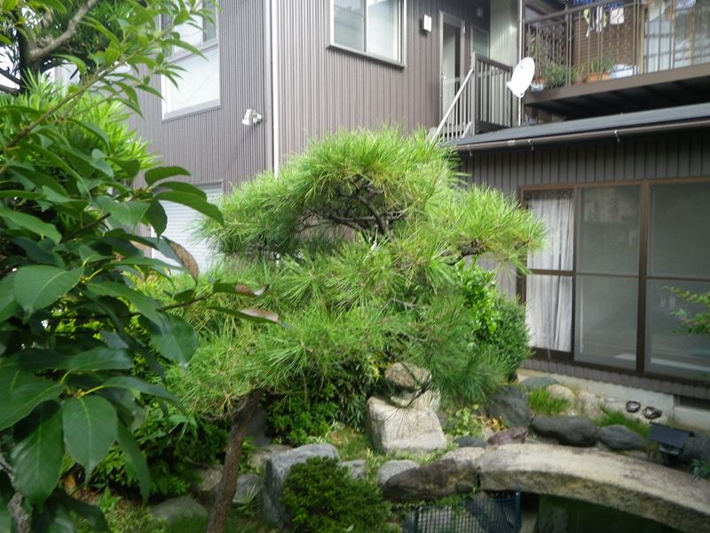 剪定完了です。 マツは、葉むしりをして、カシの木もスッキリしました。