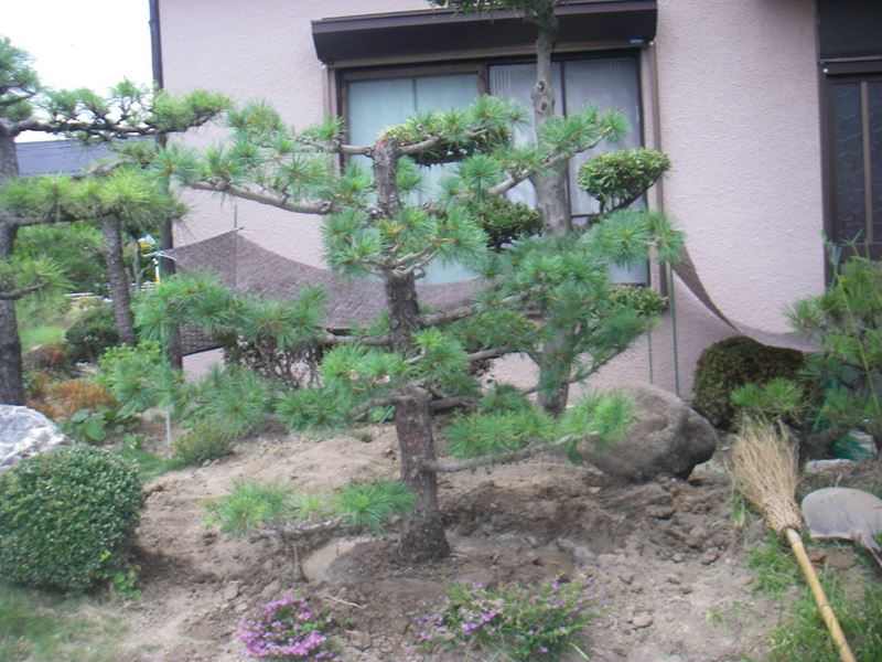 イヌマキやクロガネモチは刈込でツバキは枝抜きました。