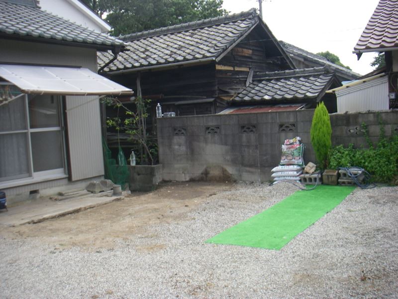 砂利はシャモットという瓦の砕いた物を使い、シャモットの下には防草シート(ザバーン)を設置しています。