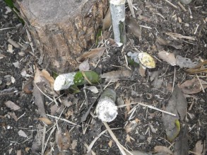 下の方の自然生えの木は伐採して、側面は脚立で揃えていきます。