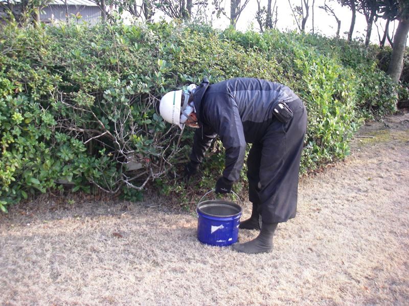 (このマシン油乳剤は害虫の呼吸を塞ぐことにより窒息させて駆除するもので、