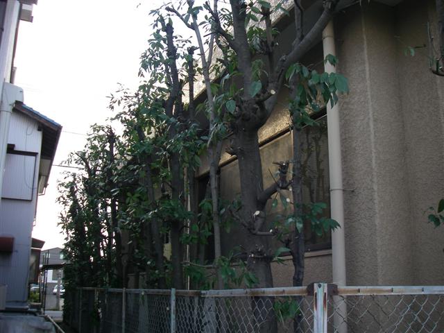 樹木がよく茂りフェンスから張り出しています。伐採及び剪定を行いました。