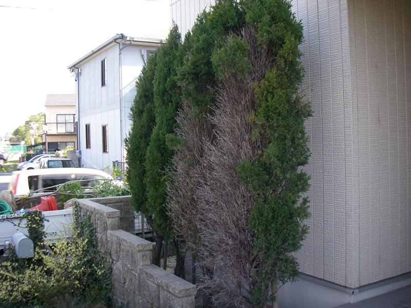そこで、お客様が手が届くように樹高を低く強剪定と、不要になった樹木の伐採を行わせていただきました。