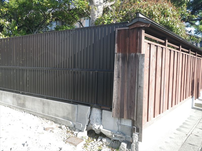 クロガネモチを伐採して、ブロック積みとフェンスを復旧しました。
