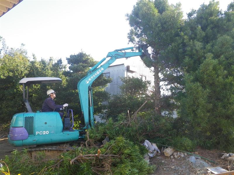 重機を使って庭木を伐採、抜根をしました。