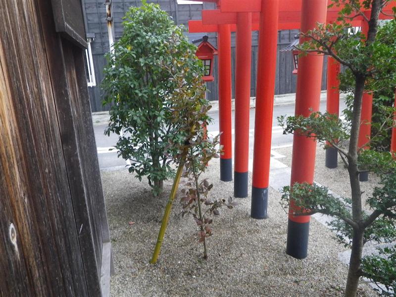 二脚鳥居支柱に結束しています。