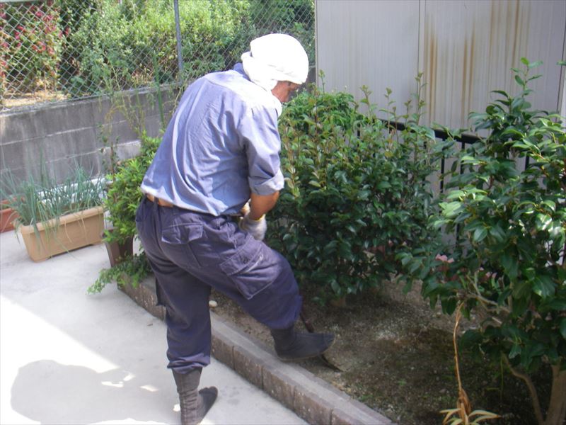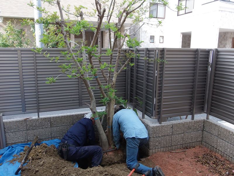 玄関前に植栽されていましたが、建物の裏に移動させる工事でした。
