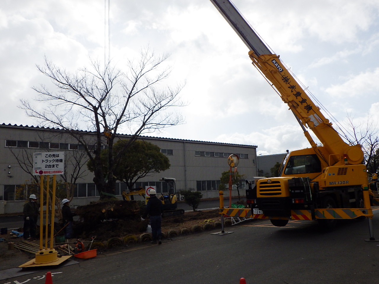 弊社のクレーン車を使う予定でしたが、サクラが想定以上の重さだったため吊り上げることが出来ませんでした。