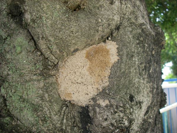 昨年、修復した部分です。(幹の下の方にできた、小さな部分の写真です。)