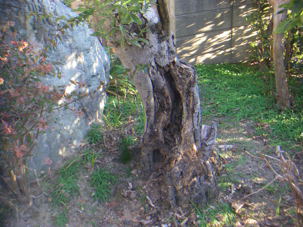 着手前の写真です。ヤマモモの根元付近はほとんど腐っていました。