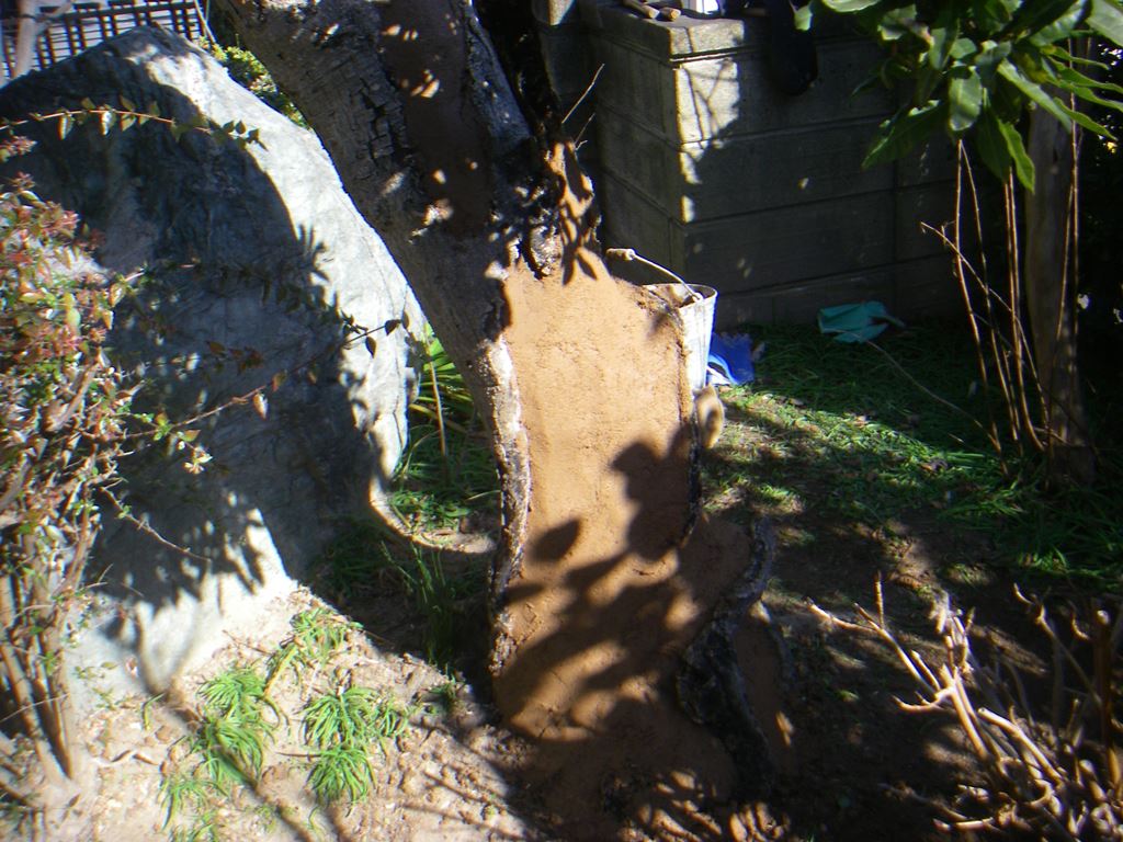 腐りを取り除き、殺菌後ウディードクターを水で練って充填します。