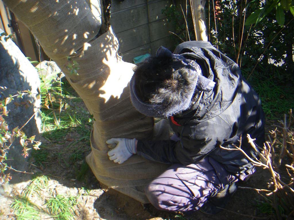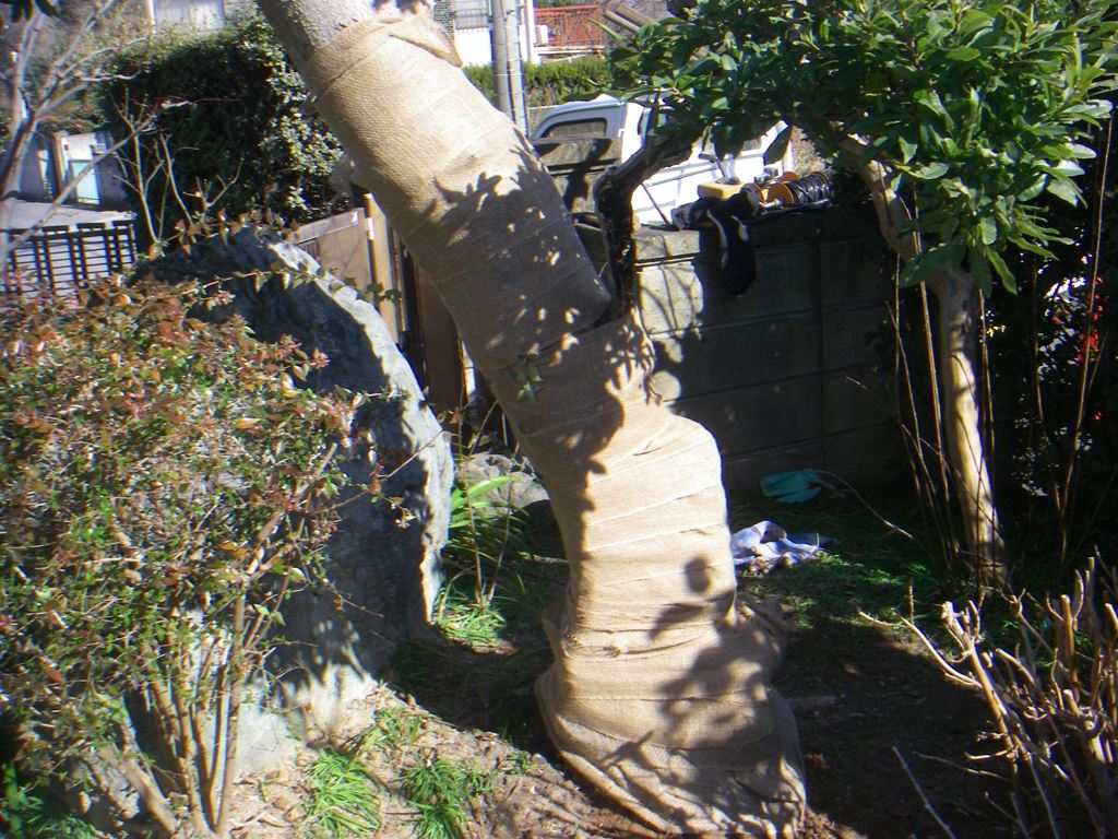 乾燥防止の為、幹まきを巻いています。