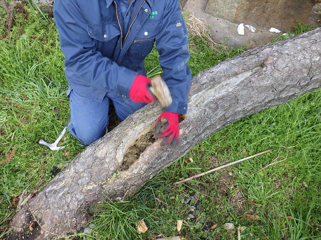 腐っている所を削っています。生きている所まで腐った所をミノ等で削り、綺麗な状態にします。