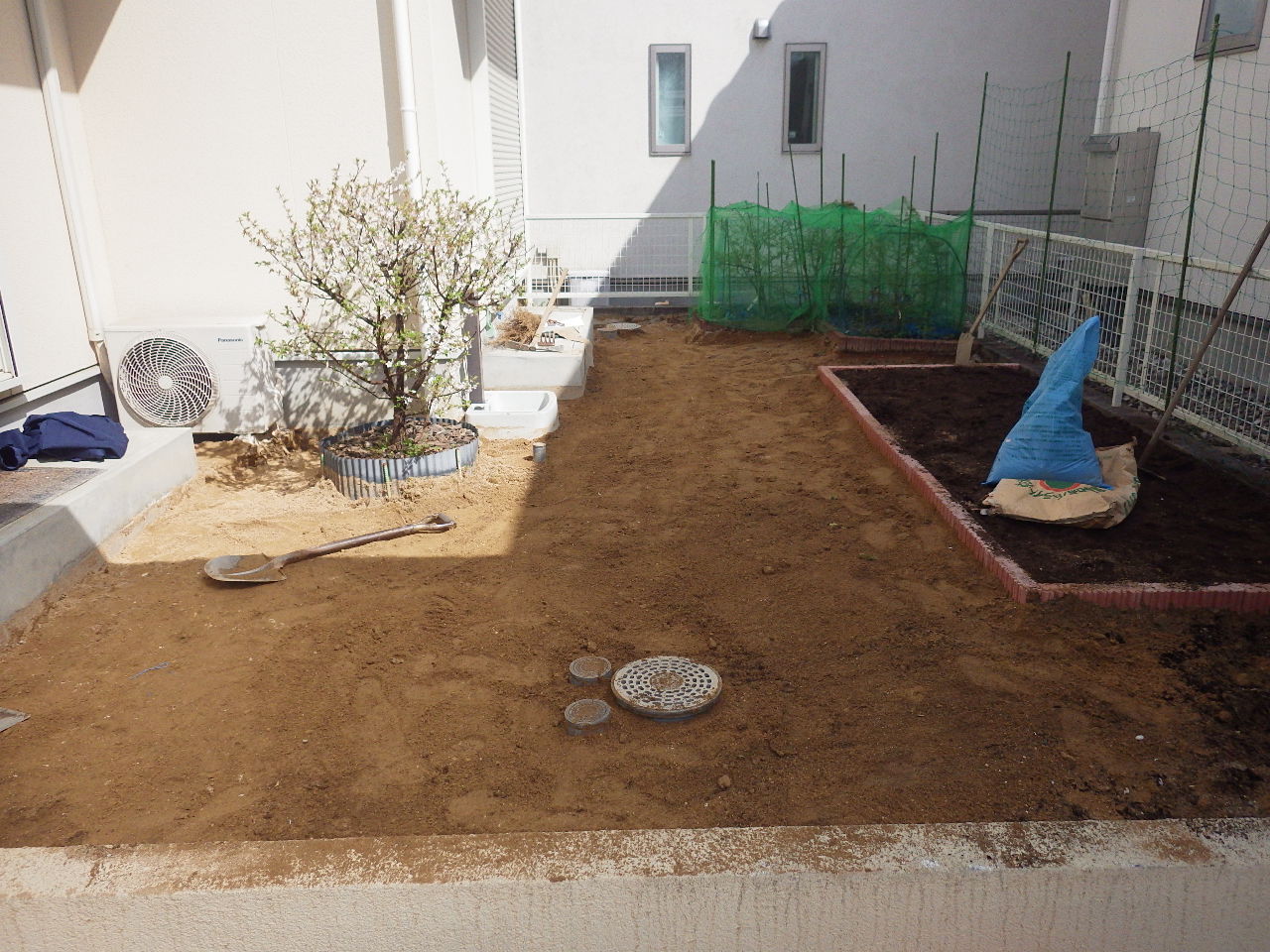 芝生を植える為に整地をしております。