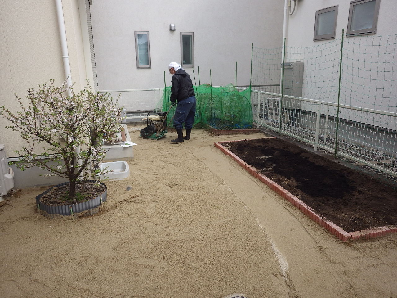 すき取りを行い山砂を敷きます。