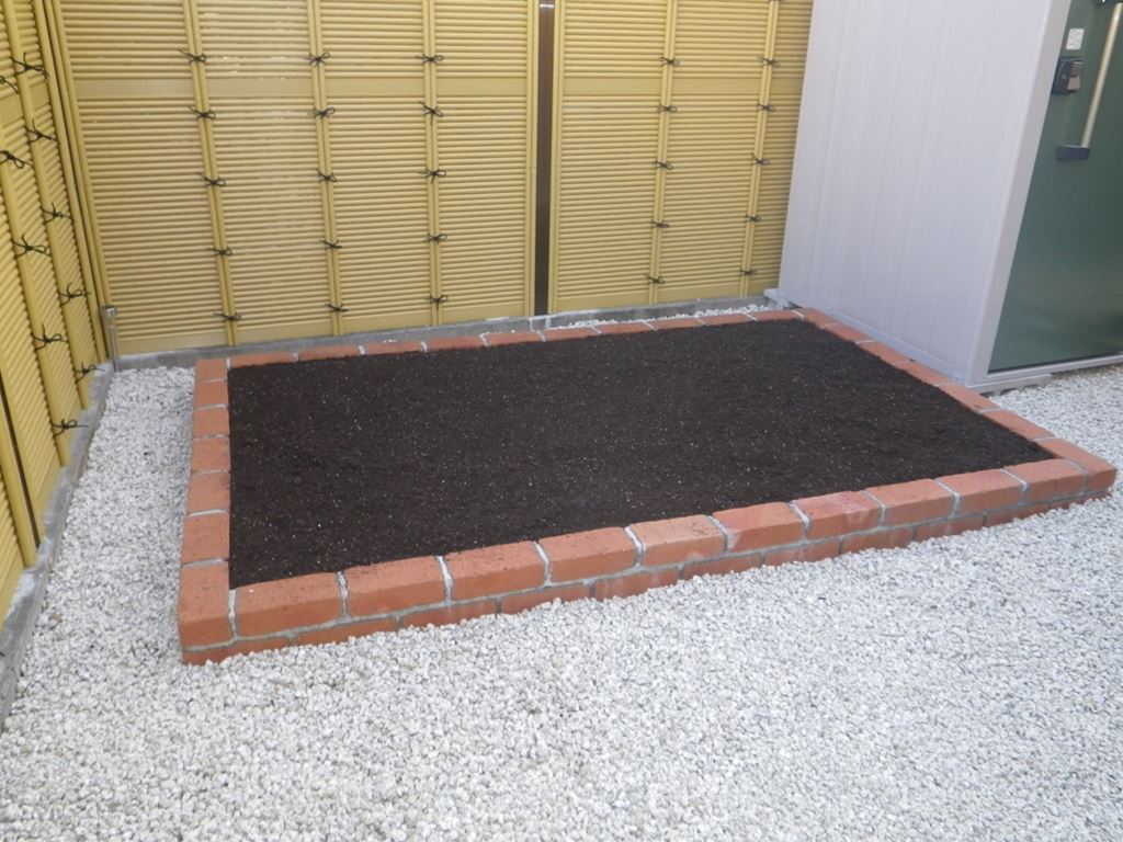 最後に花壇を作り培養土を入れて完成です。