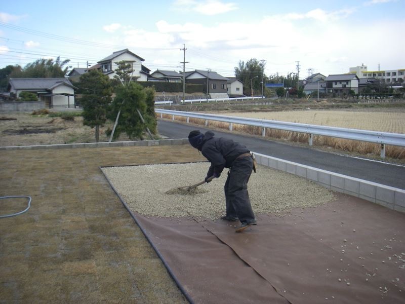 また、砂利も5cm程度(1m2当たり60kg程度)と厚めに入れることをお勧めします。