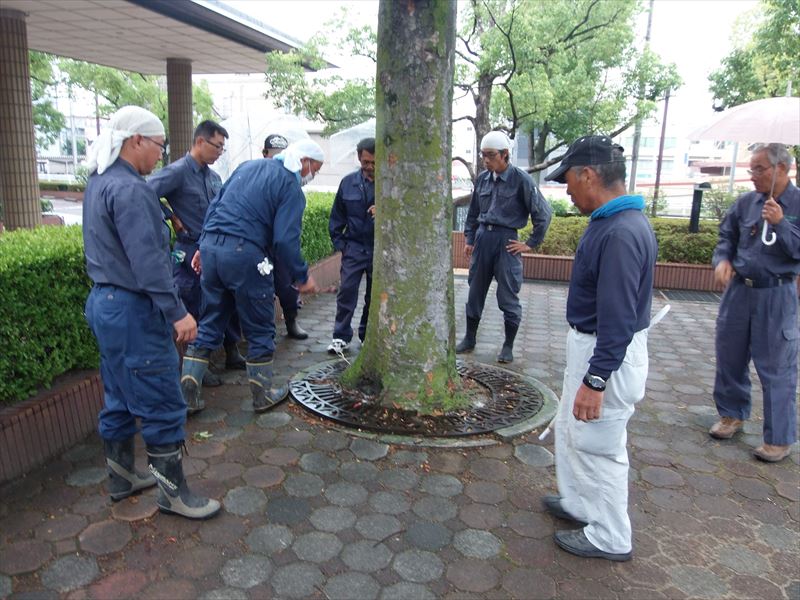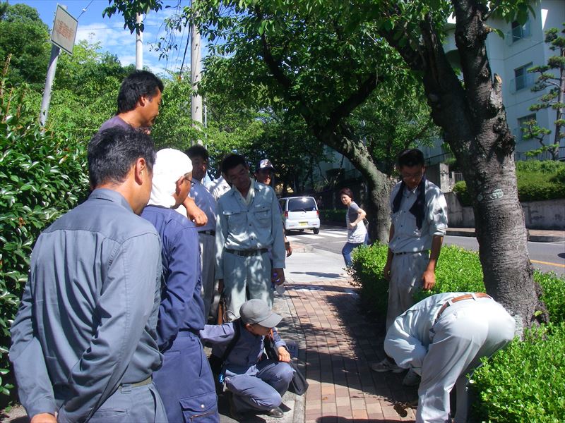 半田市の造園業者でつくる半田緑化研究会 緑地管理部会で樹木の現状を見て、樹木医資格を持ったメンバーより指摘していただきました。