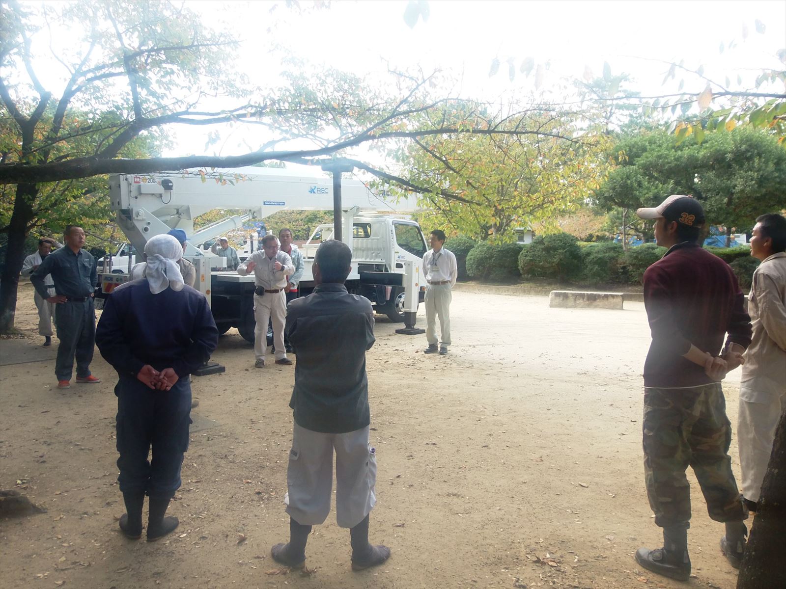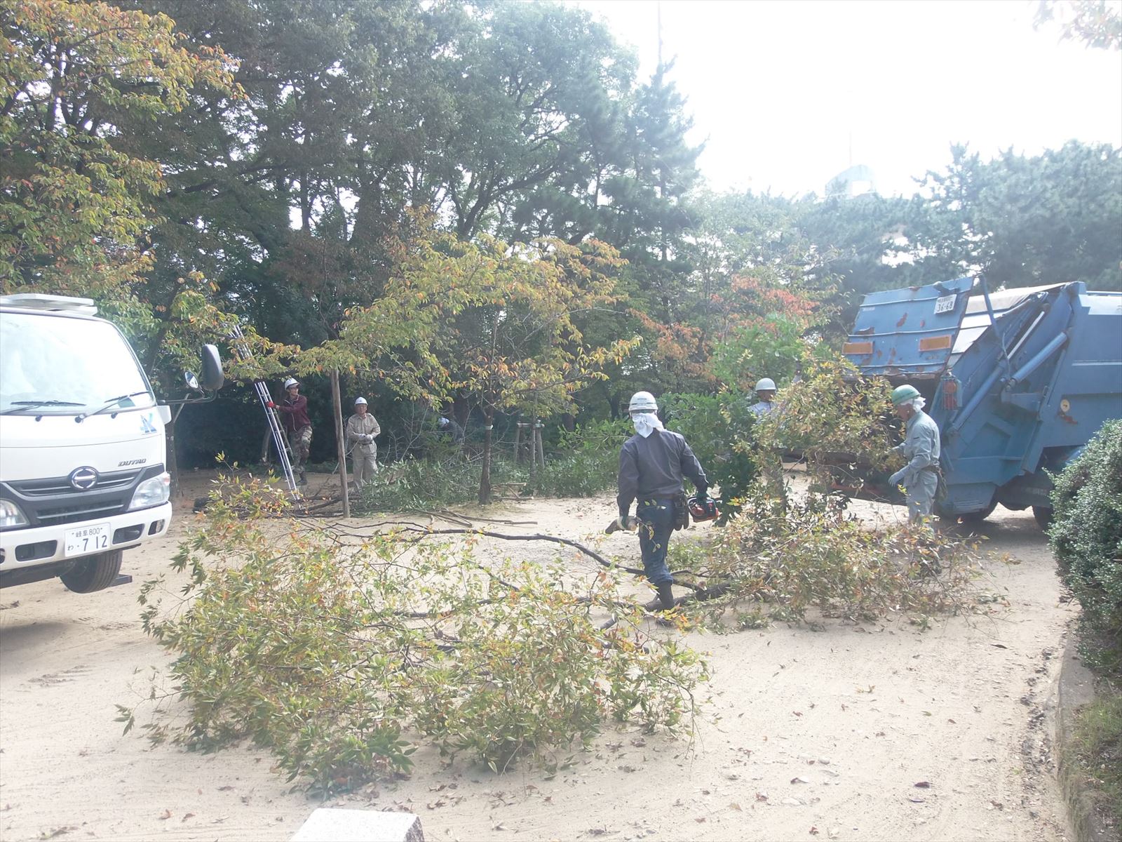 高所作業車4台 パッカー車3台で作業をいたしました。