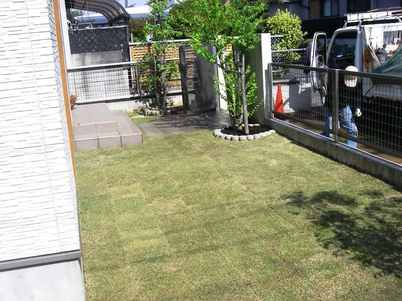芝(TM9)を張りました。TM9は省管理型の芝生で従来の芝より伸びが緩やかです。