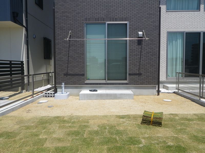 芝張り替え完了です。根が張るまでは水やりが大切になってきます。