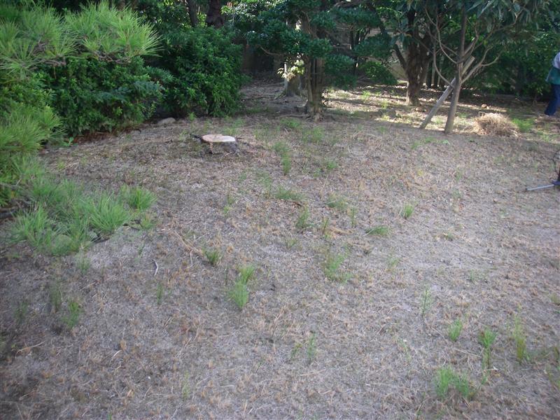 以前、コウライシバが生えていましたがチガヤの繁殖で芝生を張りかえることになりました。
