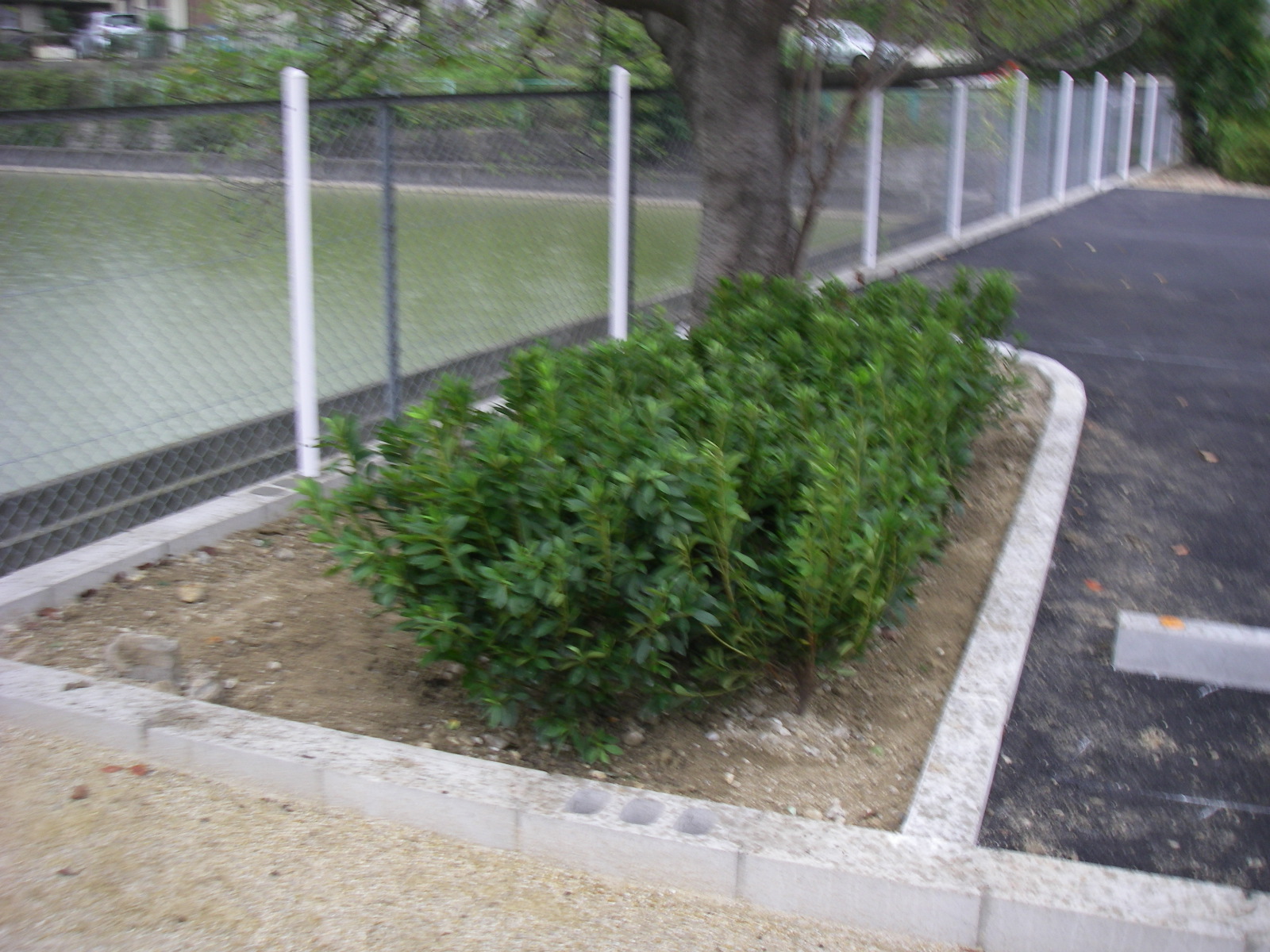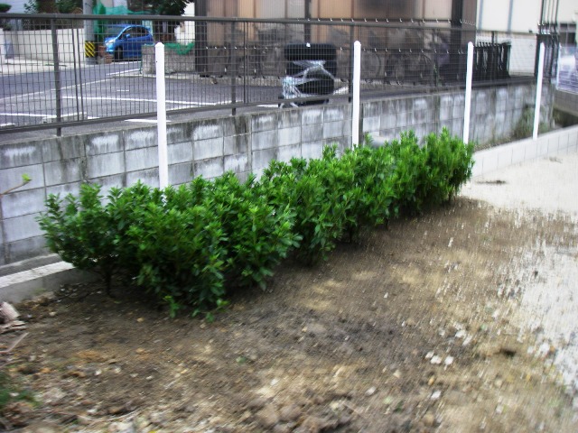 ゲッケイジュ、ヒラドツツジ、コウライシバを植栽しました。