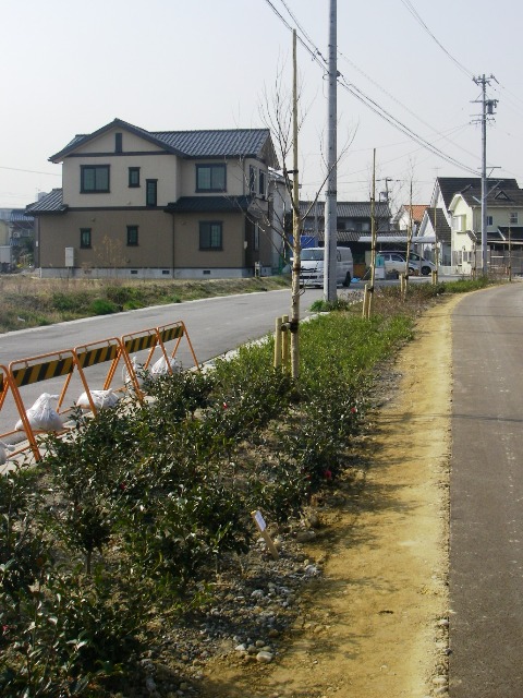 花の奇麗なエゴノキ、ミツバツツジ、ナツツバキ、クジャクツバキ、サンシュウユウを植栽。
