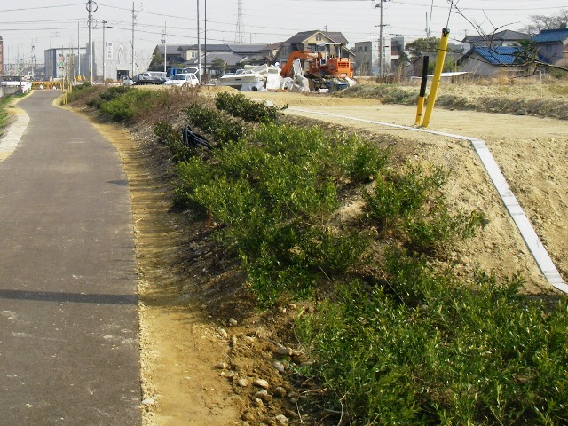 法面の面積に対してコウライシバの面積を1:1(100%張り)