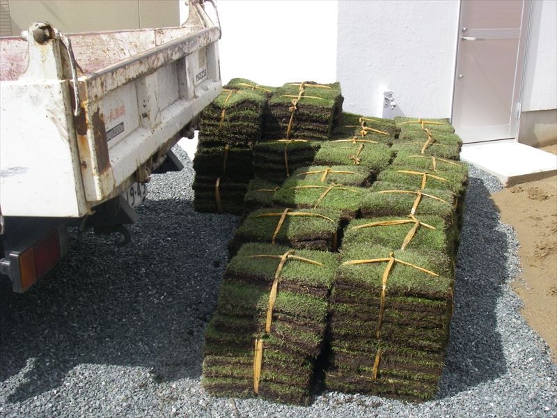 お客様は建設業を営んでおられ、娘さんが家を建てられたので芝生を自分で設置するそうです。