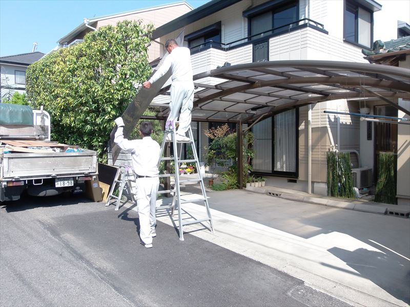 大雪でカーポートの屋根が壊れました。