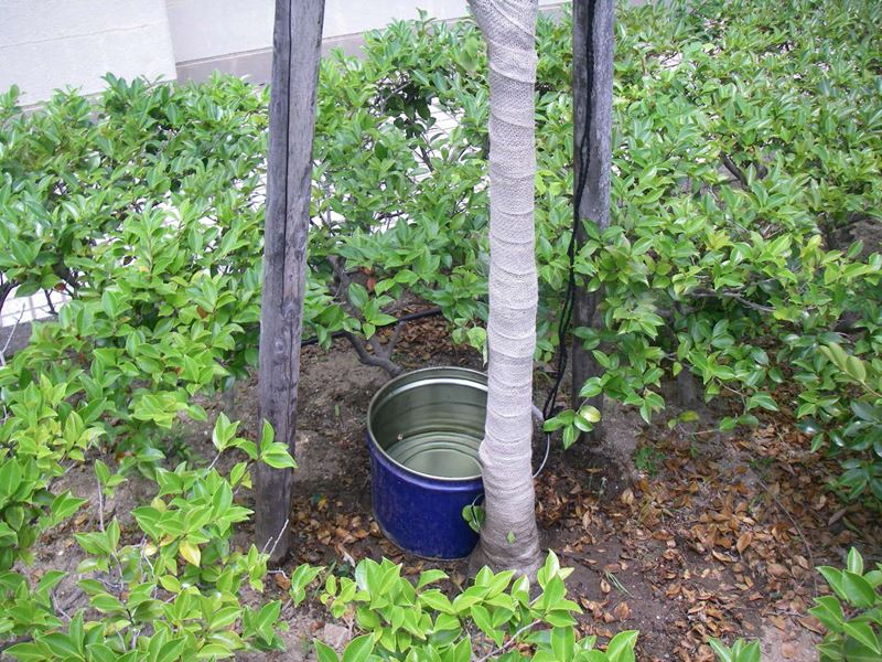 暑い日が続くのでバケツを用いて少しずつ水を与えるようにしています。