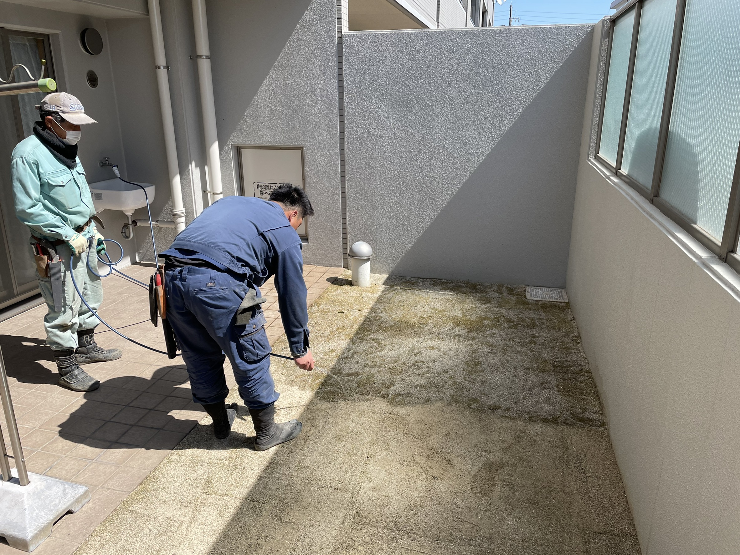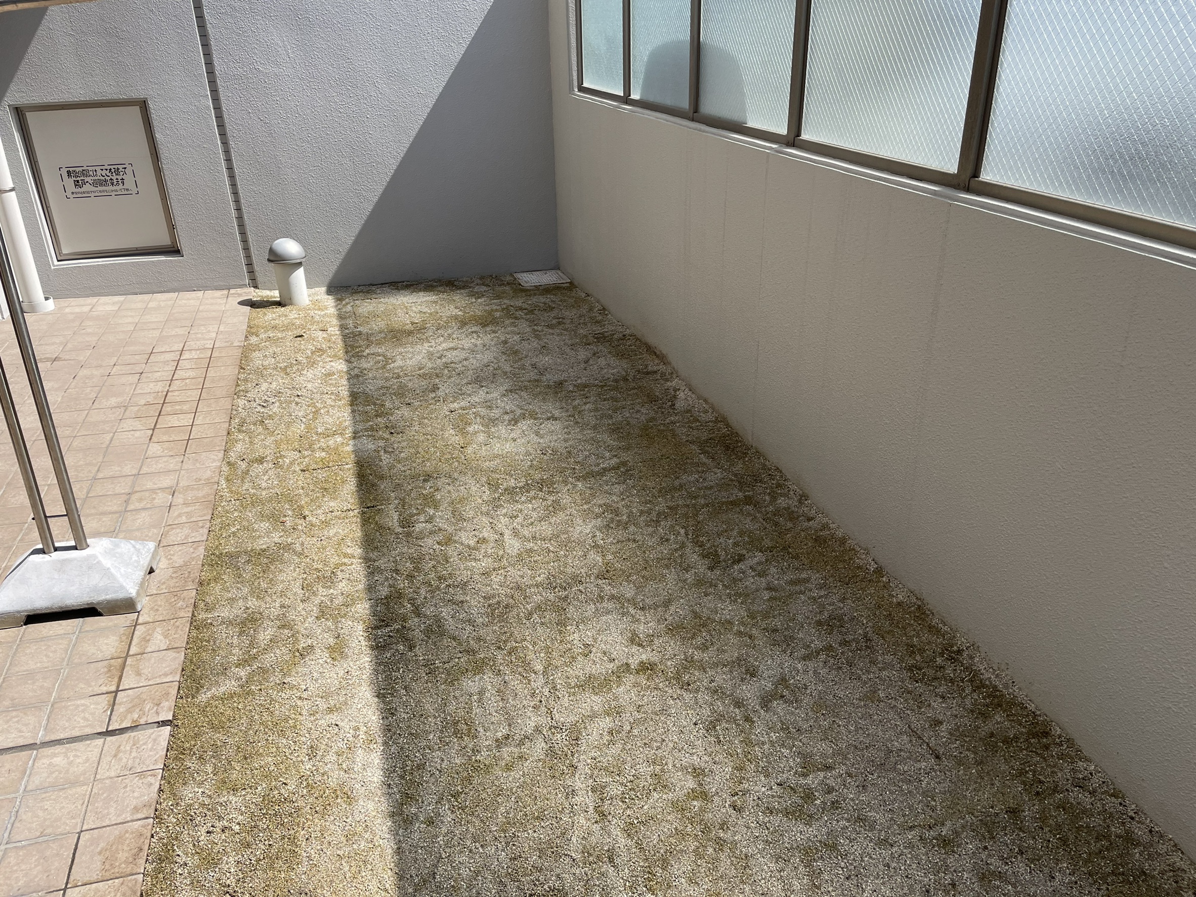 何もしていない中庭が雨が降ると砂が流れ、風が吹くと砂が舞う状況でしたので芝張を行いました。