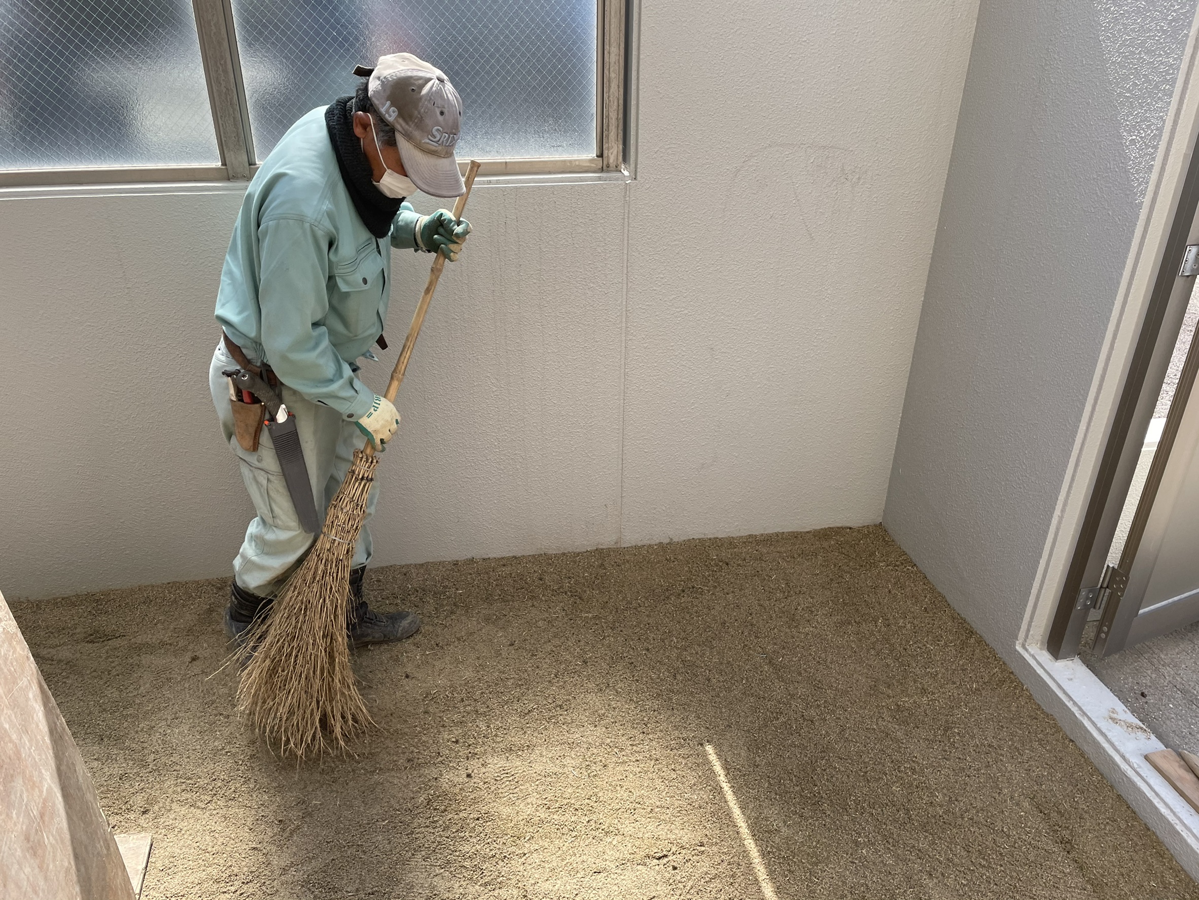 目土は竹ぼうきなどを使い芝と芝の間に入れてあげます。