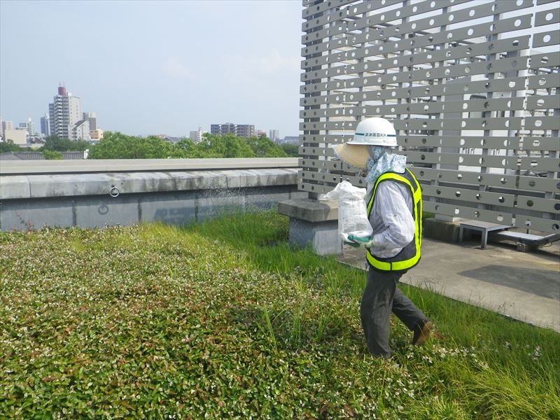また、薬剤飛散の恐れがある所では粒剤の薬を散布しました。