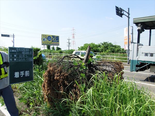 交通量の多いところでしたので、道路使用許可をとり警備員さんをお願いして、作業を行いました。