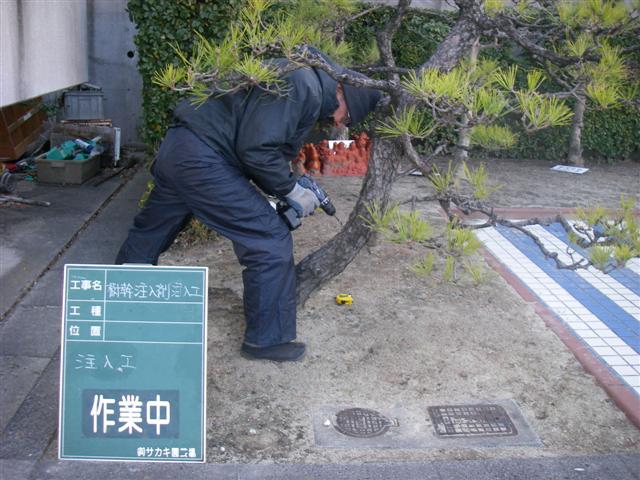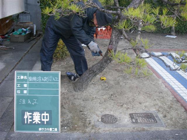 マツクイムシの予防にグリンガード(薬剤)を注入しています。