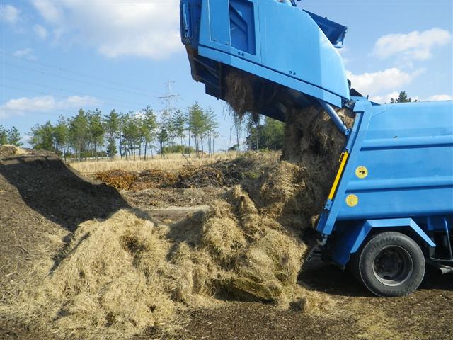 ここで醗酵させて、土の上に敷くマルチング材や土に混ぜて使う土壌改良材になります。