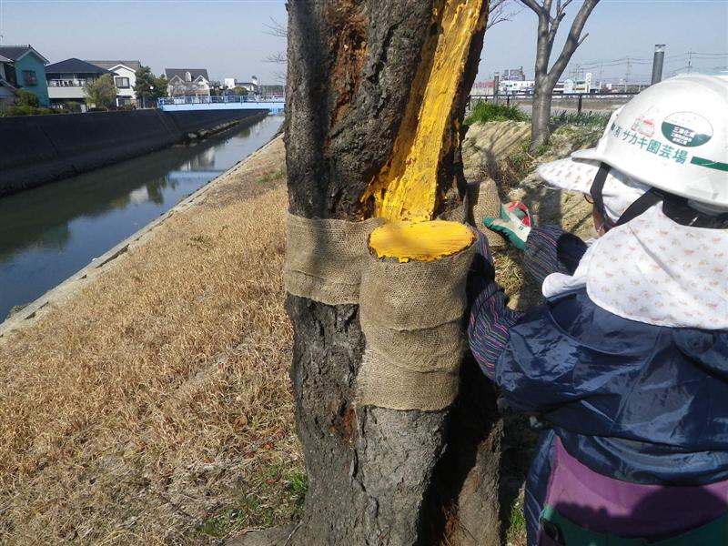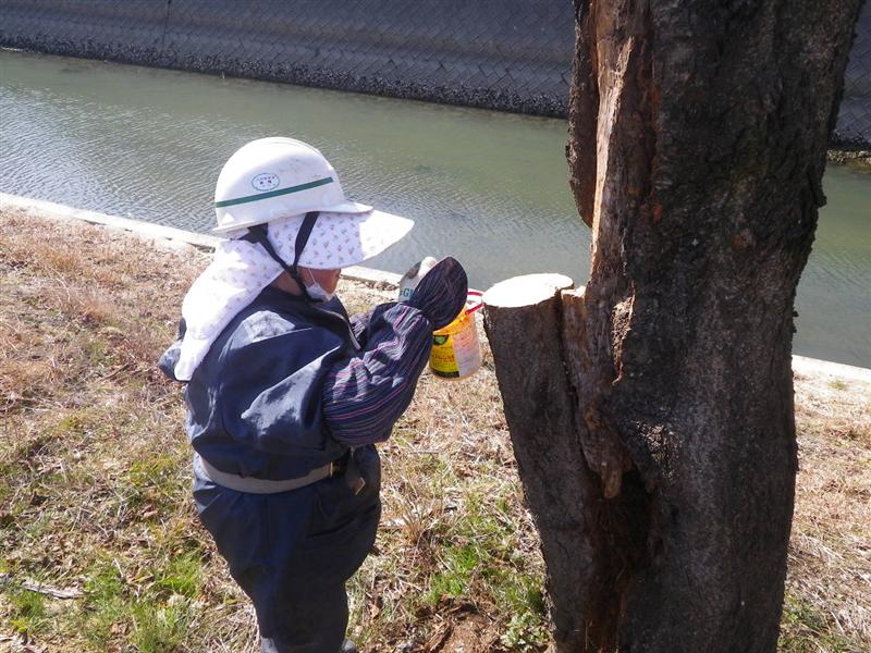 切り口に殺菌剤(トップジンMペースト)を塗りました。