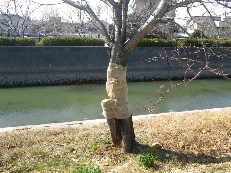 乾燥防止に切り口を幹巻テープにて保護します。