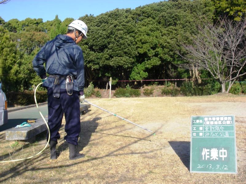 公園の除草剤散布をしています。