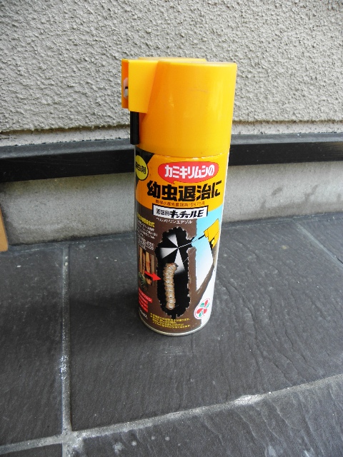 イラガのように外からの散布ができませんので、直接小さな穴に散布する方法しかありません。
