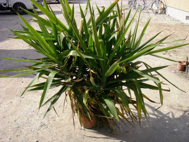 大きくなりすぎたユッカを切り戻して仕立て直しました。