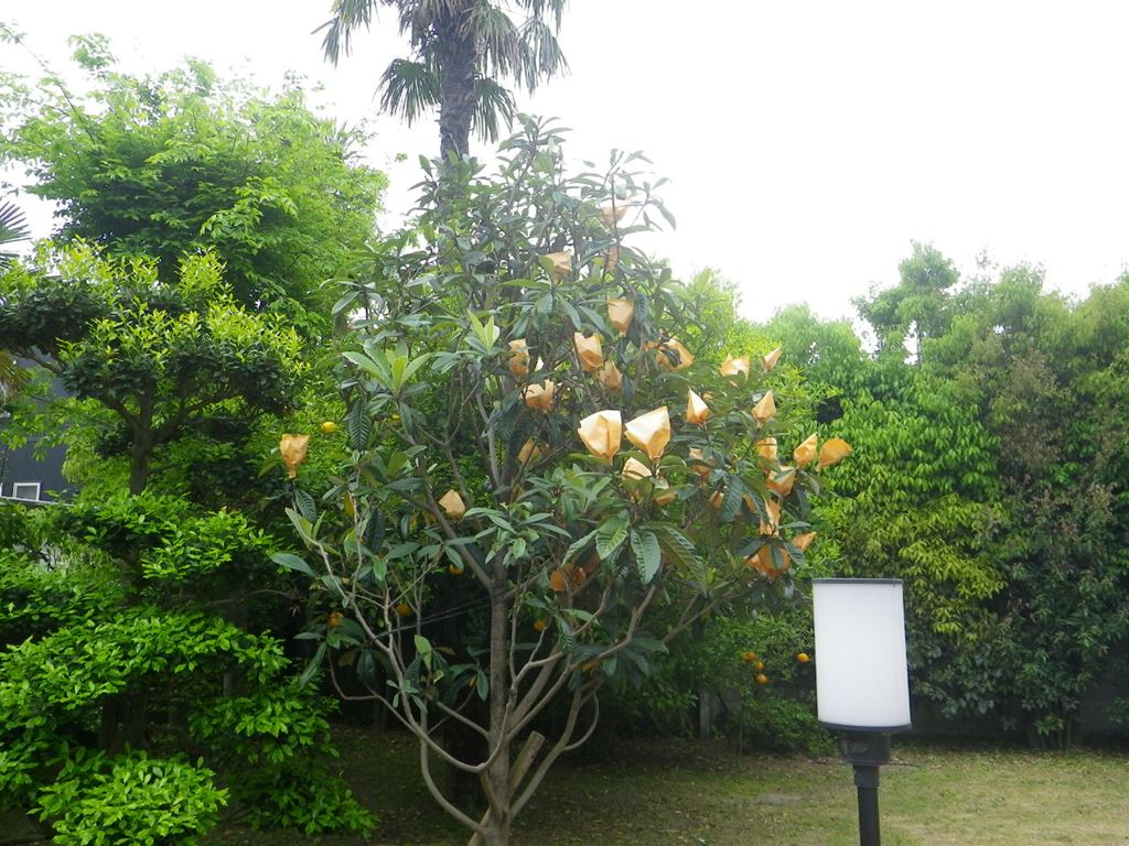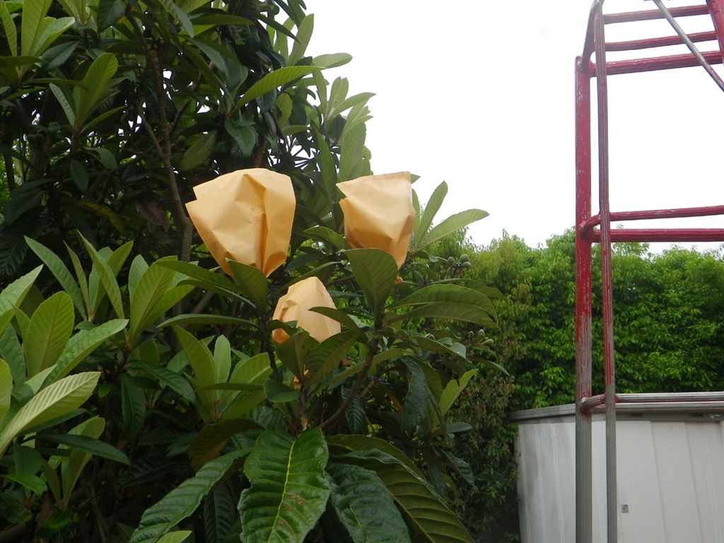 ビワの袋掛けをしました。