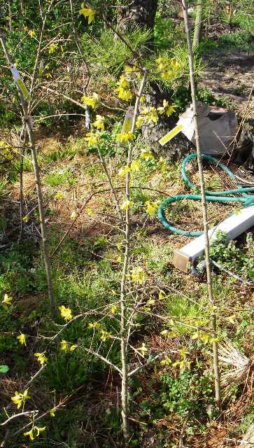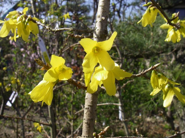 レンギョは暴れやすい木ですが、枝垂れですのでそれほど伸びません。