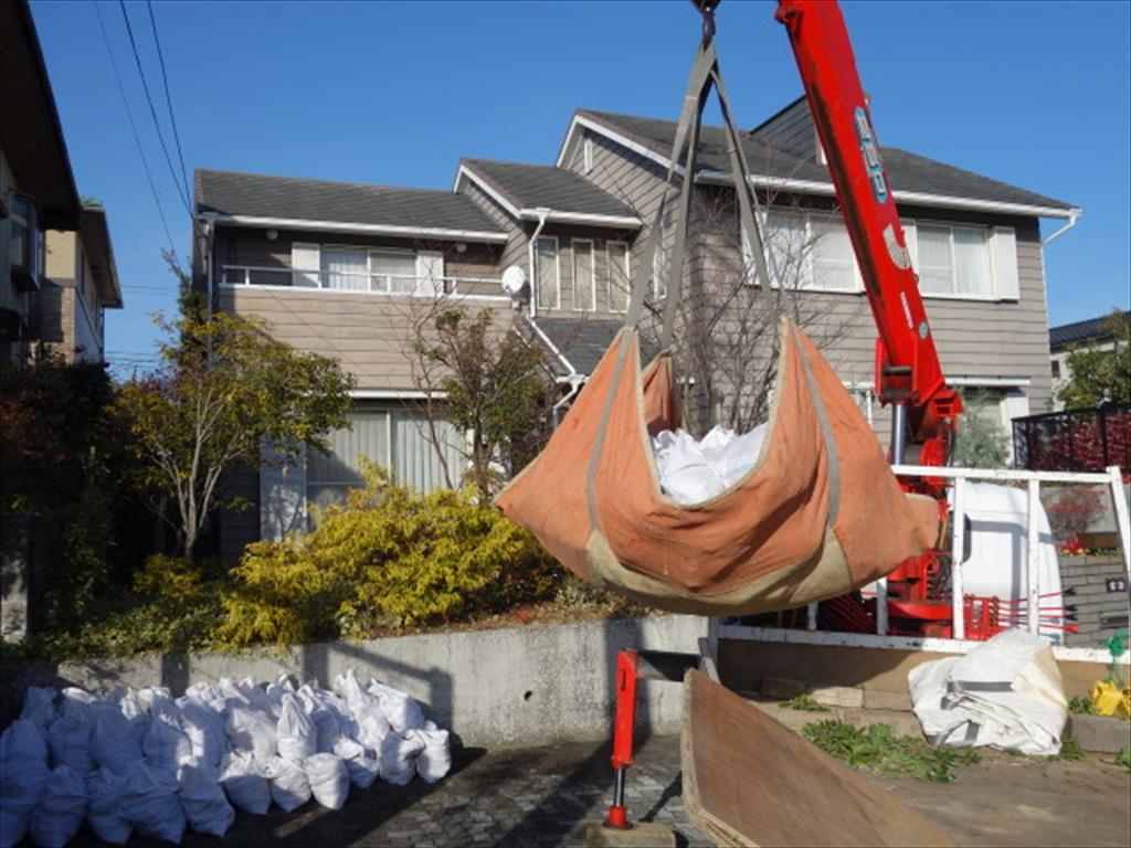 お客様のご都合に合わせて残土を大きな石と粘土等に分けて袋詰めしていただきます。